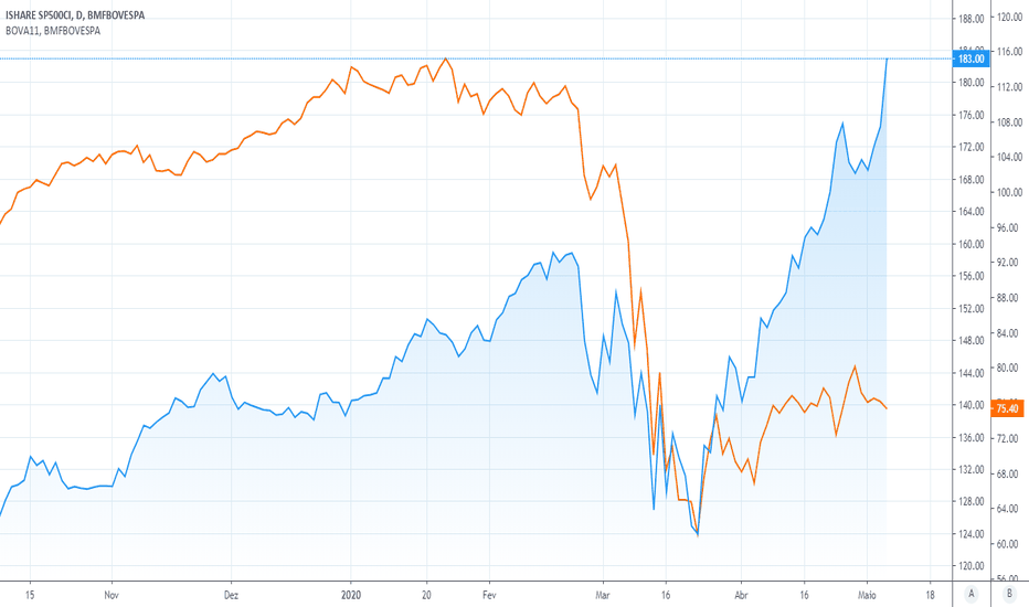 Para ilustrar, separamos um gráfico que ilustra a correlação entre o S&P (bolsa americana) e o Ibovespa (bolsa brasileira). Observe que, quando um sobe, o outro tende a descer.